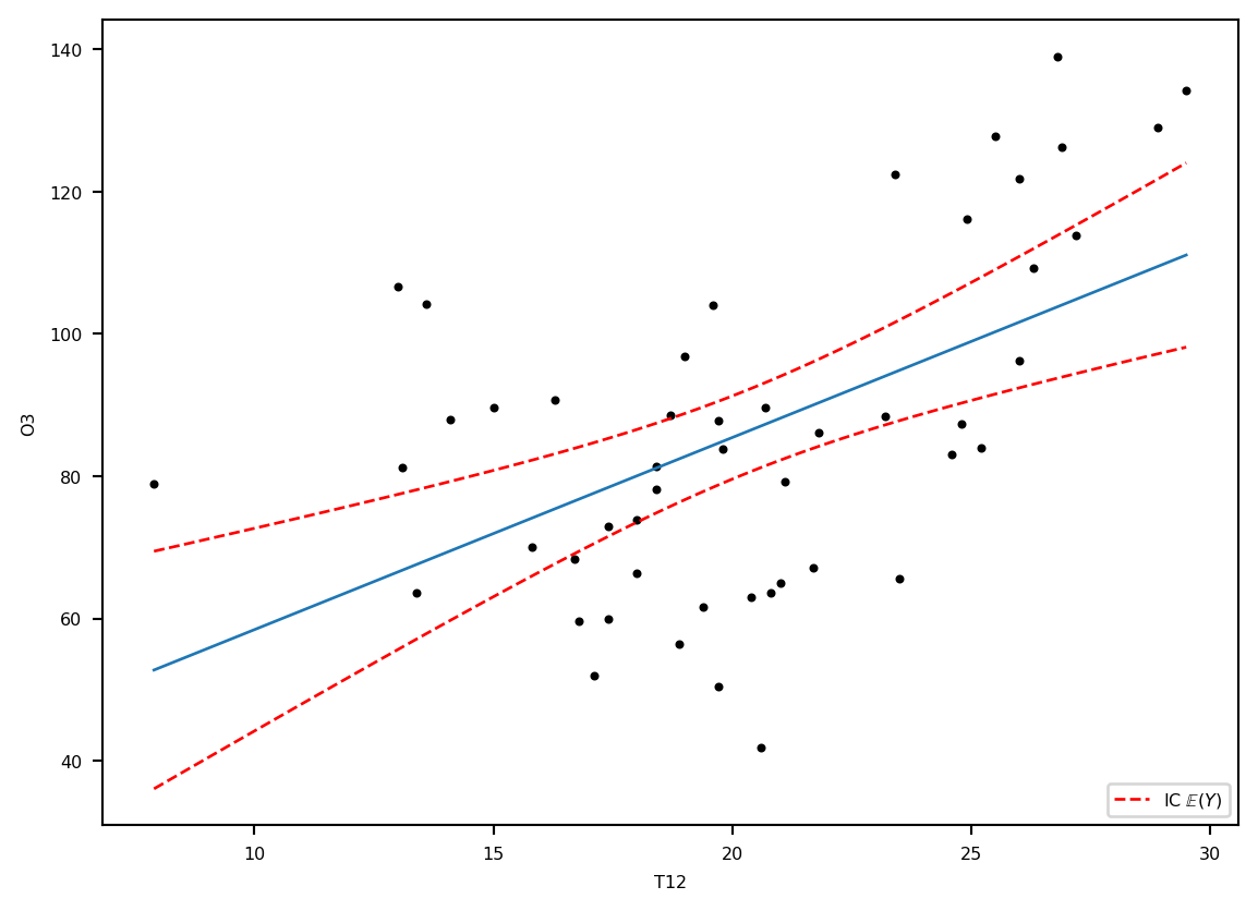 = smf.ols('O3 ~ T12', data=ozone).fit()