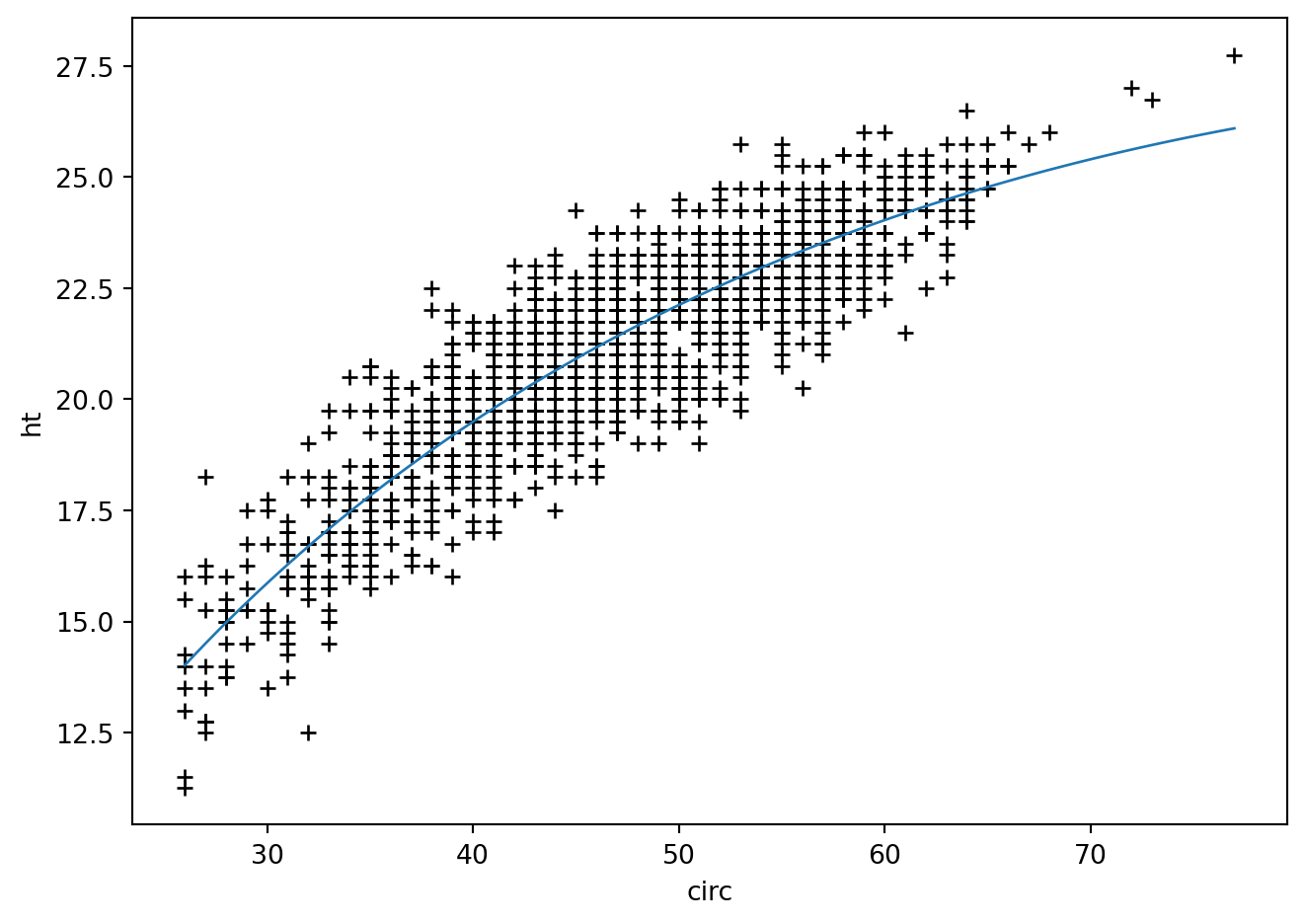 = smf.ols('ht ~ circ+np.sqrt(circ)', data=eucalyptus).fit()
