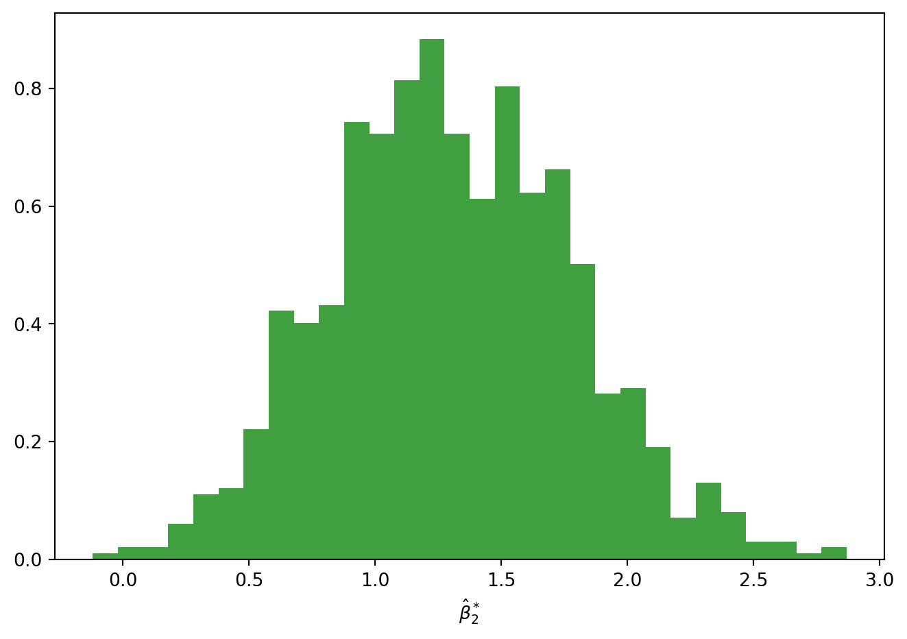 n, bins, patches r'$\hat \beta_{2}^*$')